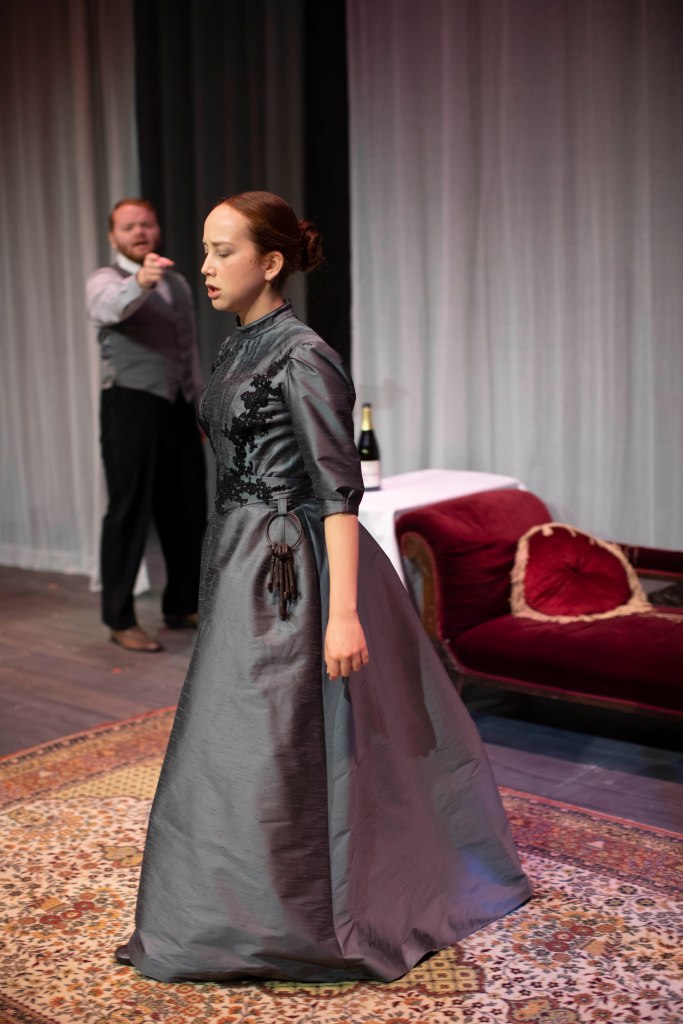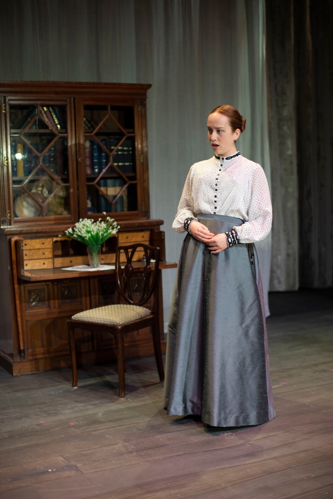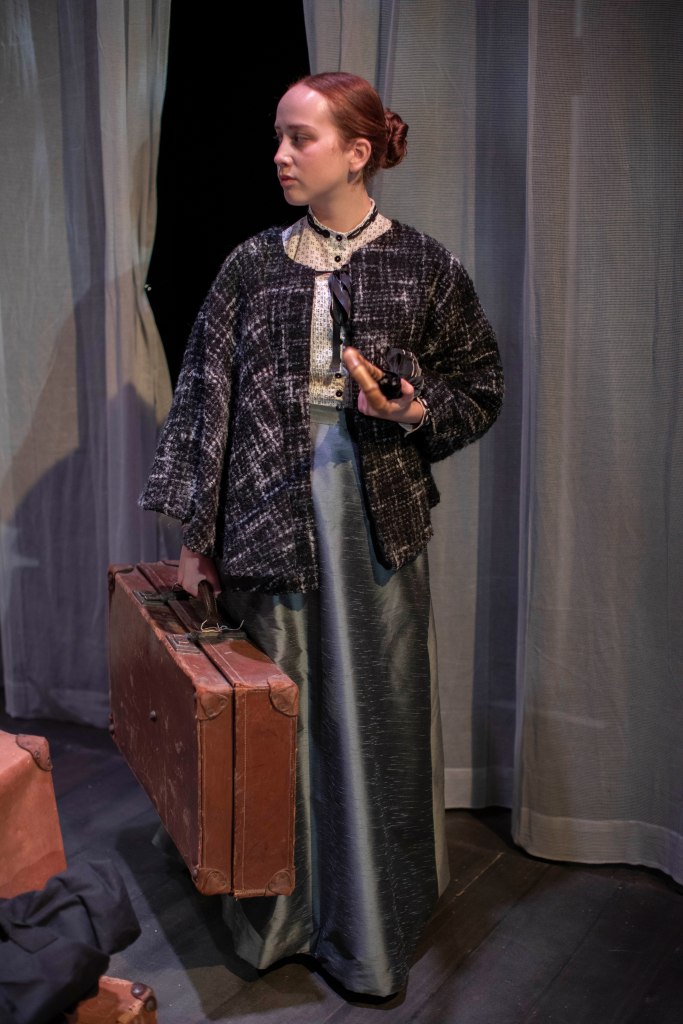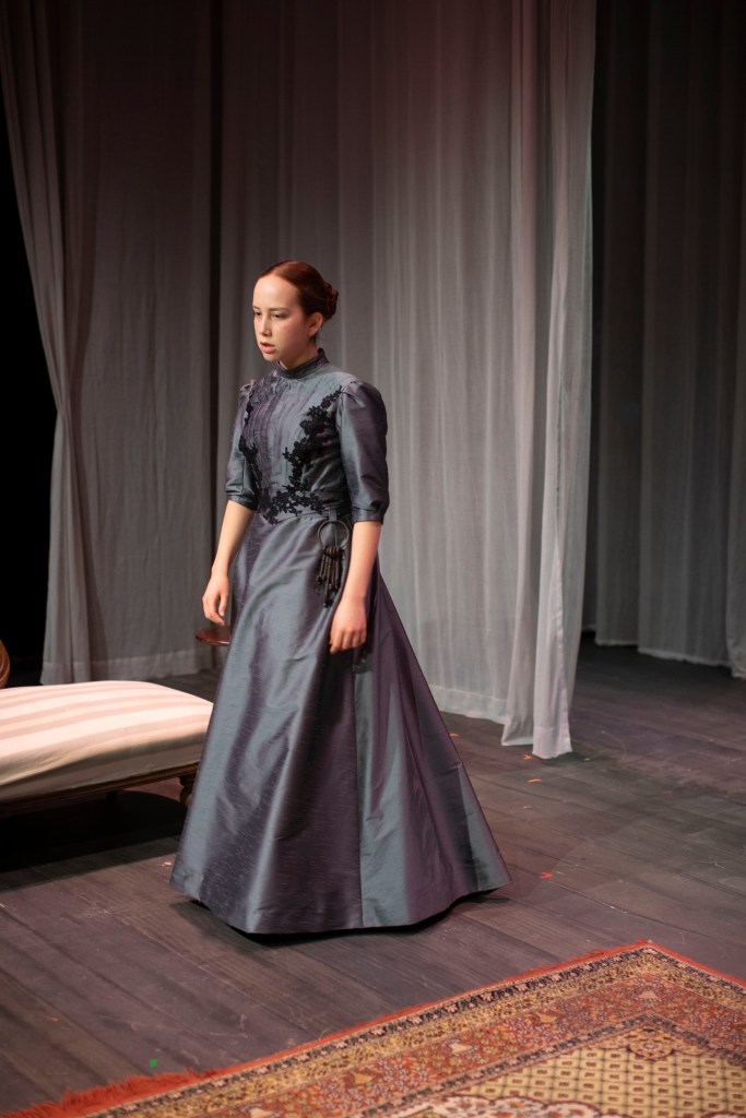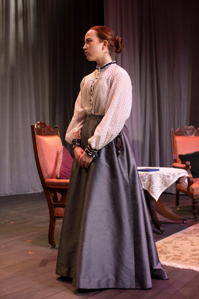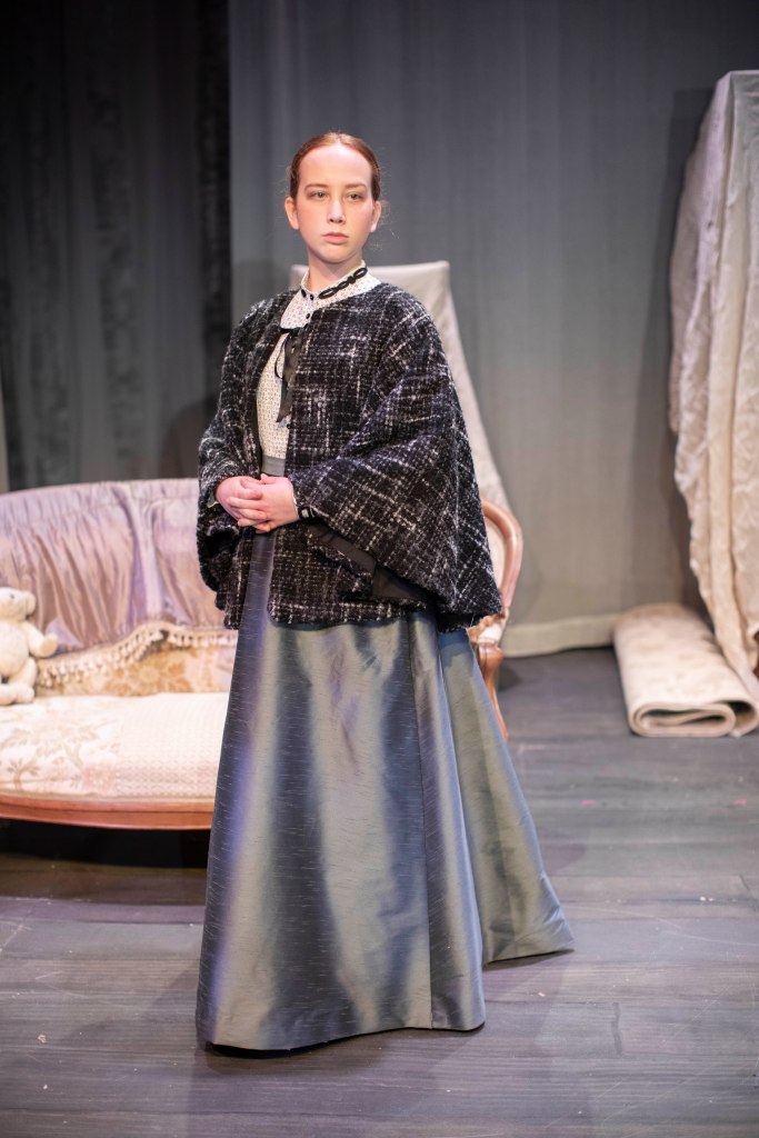 I made the costumes for the character Varya were she used two different costumes through out the play. For the main part of the play she used a walking skirt and a blouse and for act 3 the same walking skirt, but also a decorated evening bodice.